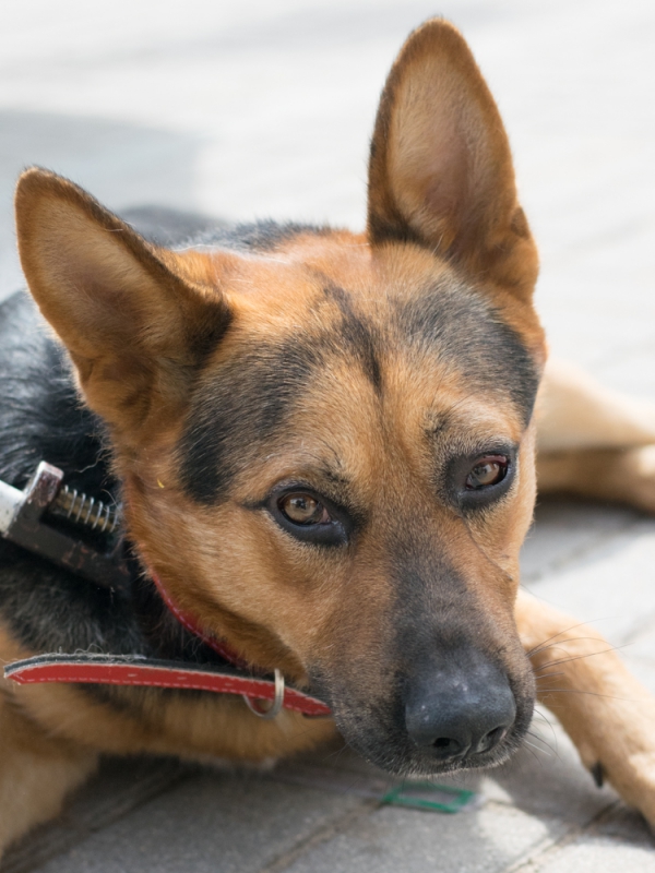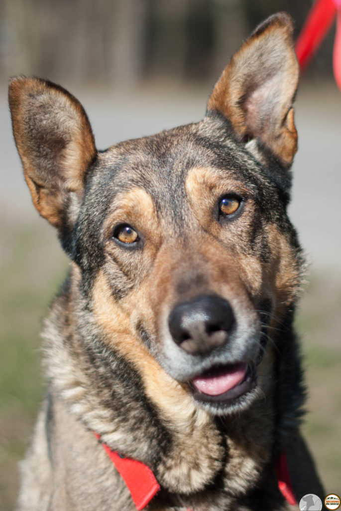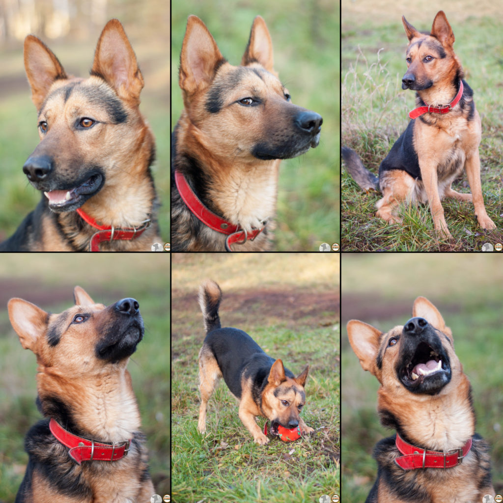 Nic dziwnego, jak już wybrał sobie dom, do którego się przybłąkał i nawet już chciano go zostawić, bo przystojność biła od owczarka, to użarł tamtejszych dwunożnych, jak tylko chcieli mu smyczkę zapiąć. I tyle było z tego… Drejk przyjechał do nas, a nasi zapamiętali sobie, że przy jego szyi się nie grzebie, widocznie ktoś mu tam kiedyś coś przykrego zrobił. W każdym razie Wolontariusze się nie poddają (nie napiszę, że tak łatwo, bo się nie poddają WCALE) i pierwsze co odkryli, że Drejk uwielbia się bawić, a kiedy zabrali go na zdjęcie wyszło, że… najrasowszy z niego model. Te miny! Te pozy!