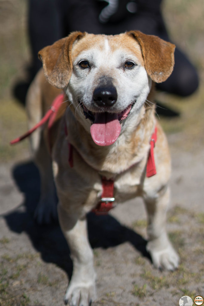 Było o niej baaaardzo niedawno temu, więc przypomnę tylko, że to bardzo sympatyczna psiolaska, chociaż boi się to okazywać przy pierwszym poznaniu. Kłapie dziobem przez kraty, ile wlezie… A ona tak lubi szaleć na wybiegu i głaskaniem też nie pogardzi! Młoda jest jeszcze, chociaż fafle ma siwe, ale nasi jej dali 4 lata. W schronisku czeka na dom już ponad rok…