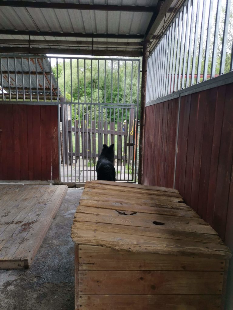 Wtedy go pochwaliłam, zdaje się, ale cóż… Sytuacja się troszkę zmieniła. Początkowo Baki był uroczym, czarnym niedźwiadkiem, ale po kilku dniach coś mu się odwidziało, najwidoczniej zrozumiał, że trochę tu posiedzi i stwierdził, że czas pokazać, na co go stać… Dziś ten futrzasty przystojniak wybiera sobie dwunożnych, których wpuści do kojca, ale o wszelkim mizianiu czy zapinaniu smyczy nie może być mowy bez jego akceptacji. No i co zrobić… Nasi nad tym pracują.