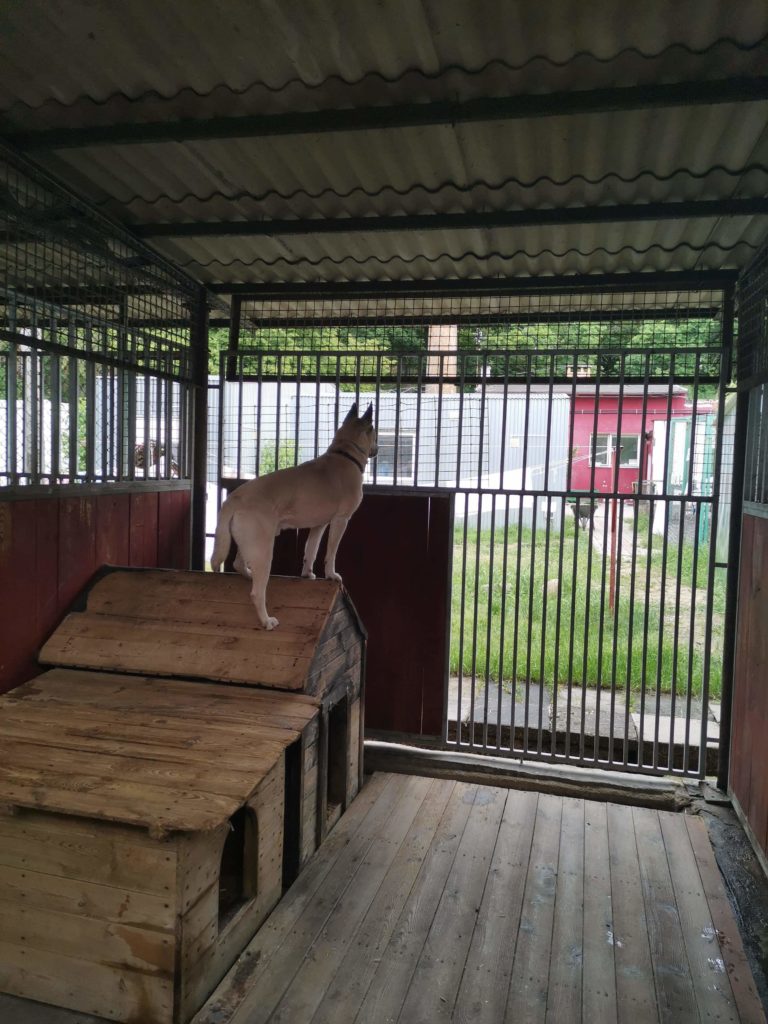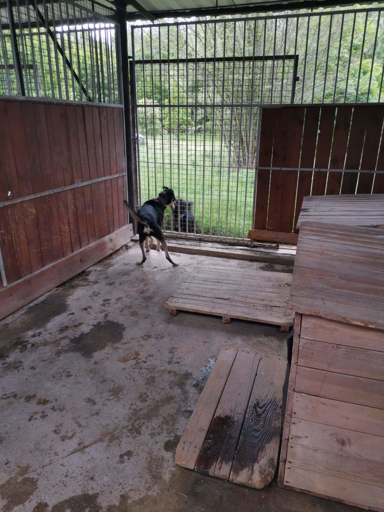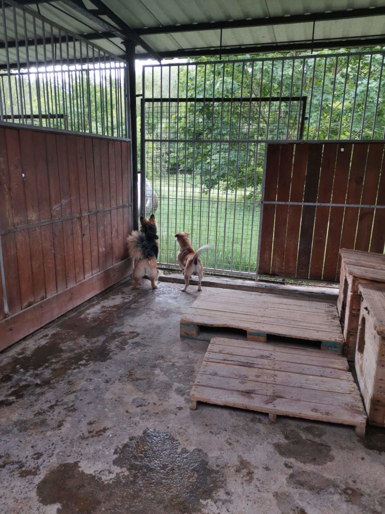 Baki ma widok na końcówkę wybiegowych kojców – tam jest taki płotek specjalny, żeby jednemu psiumplowi, Majkowi, łatwiej było do kojca wracać, bo się za bardzo rozprasza… Jeden z naszych taki wykombinował, zdolny taki i myślący o nas!