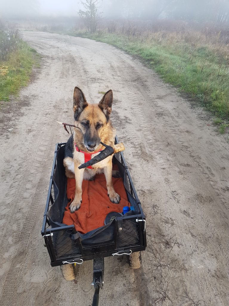Męcząco jednak tak chodzić jednołapnie prawie, w dodatku wiadomo, że za daleko nie zajdzie, dlatego zabieranie go na takie przejażdżki jest super w dechę!